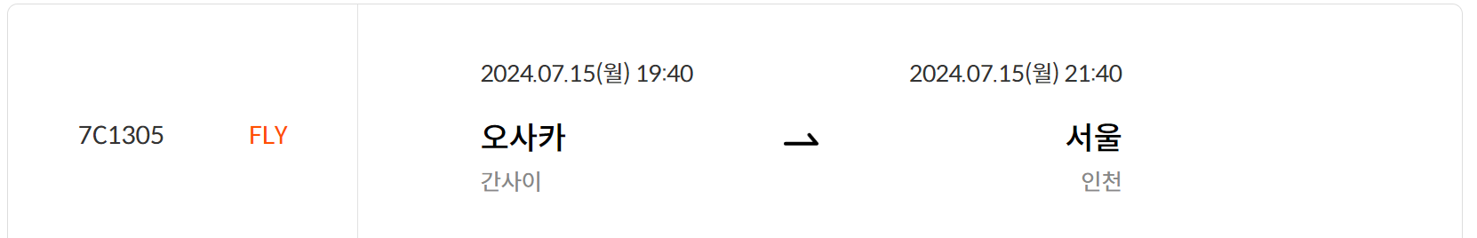 우선 오사카에서 인천 편도만을 검색해봤다.