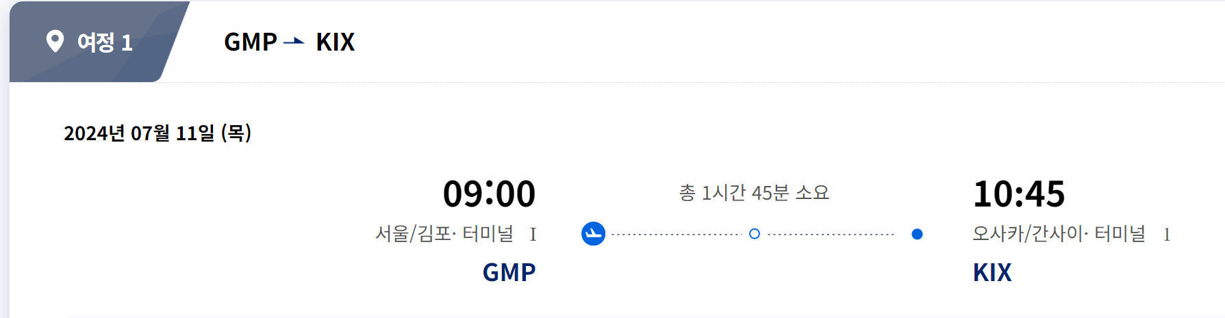 최종 여정은 7월 11일 09시 발, 7월 15일 21시 40분 착으로