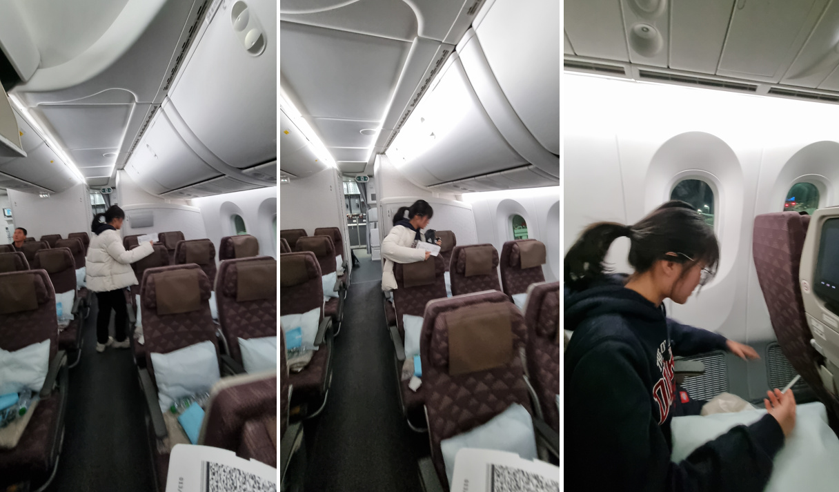 앞 좌석과의 간격은 올 때 탑승했던 B747-9이 조금 더 넓은 듯하지만..