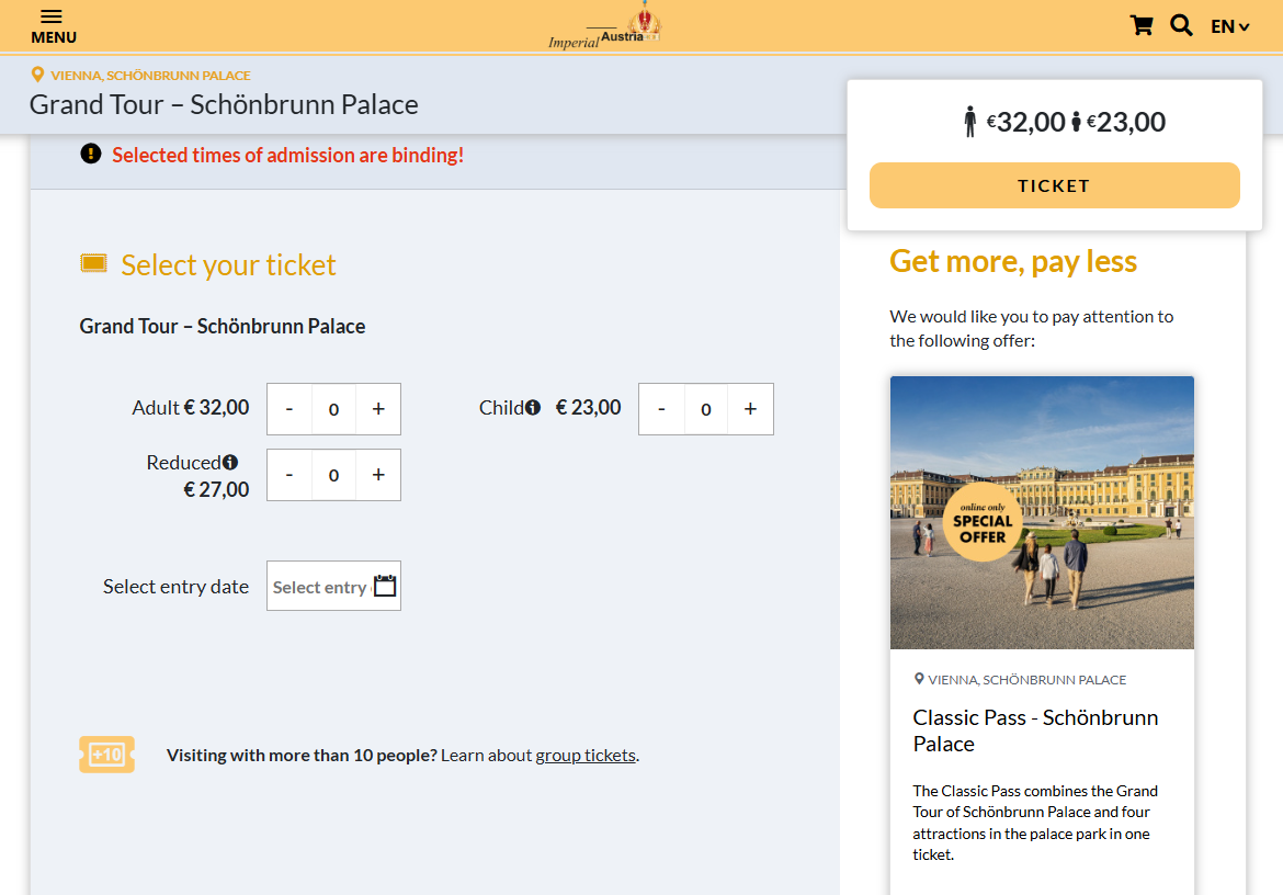 이어서 쉰브룬 궁전을 예매하는데..