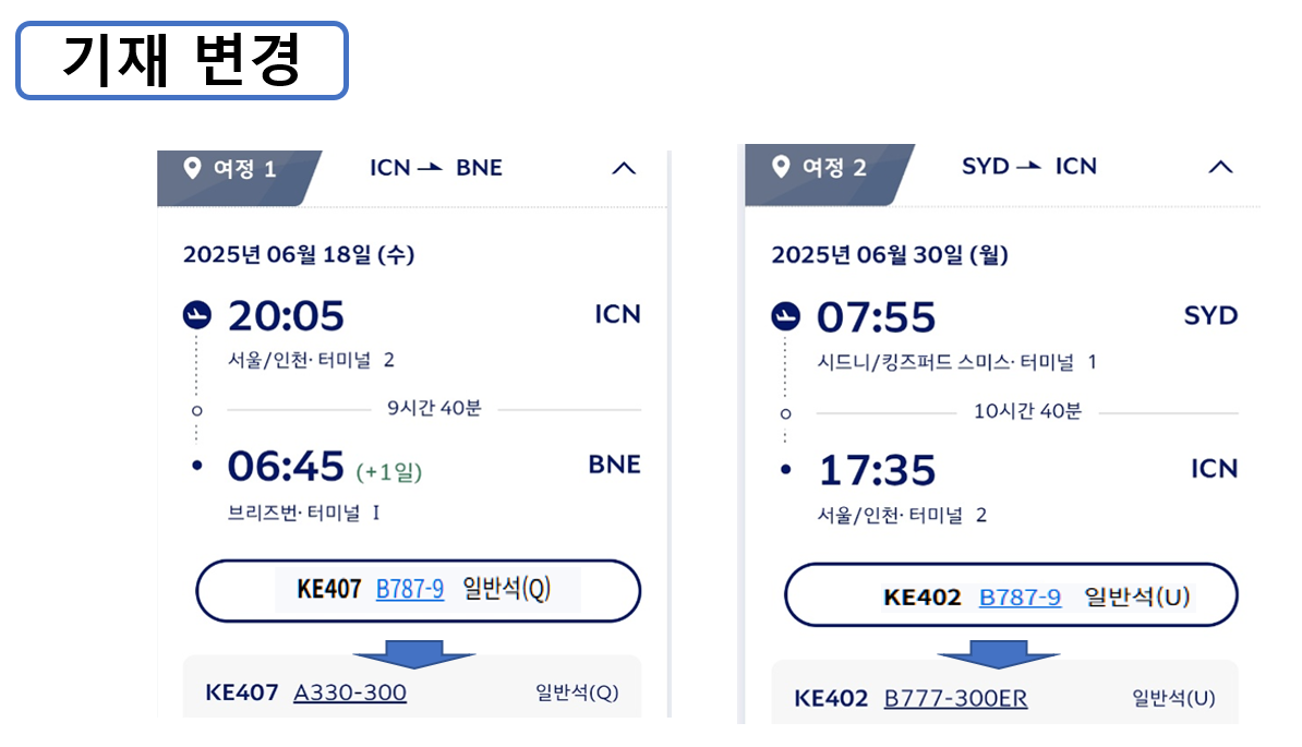 오늘 이용할 KE 407편은 중간에 기재 변경이 있었다.