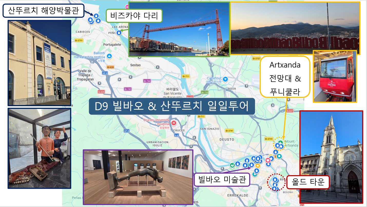 DAY 9: Artxanda 전망대, 비즈카야 다리, 산뚜르치 해양박물관, 올드 타운, 빌바오 미술관 & 야간 투어